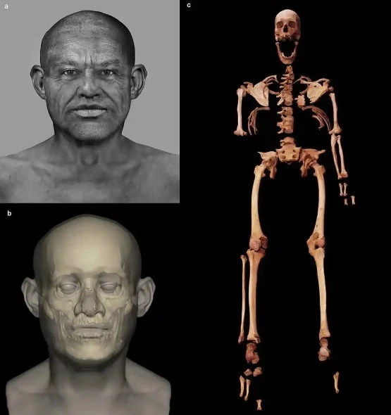 «شاید او به طرز خارقالعادهای ماهر یا به اندازه کافی موفق بوده که جایگاه اجتماعی خود را ارتقا دهد.» دی ان ای این مرد نشان داد که بیشتر تبار او از شمال آفریقا آمده اند. اما حدود ۲۰ درصد او به افراد باستانی از هلال حاصلخیز منطقه ای از غرب آسیا که شامل کشورهای امروزی مانند عراق، ایران و اردن میشود مربوط میشود.