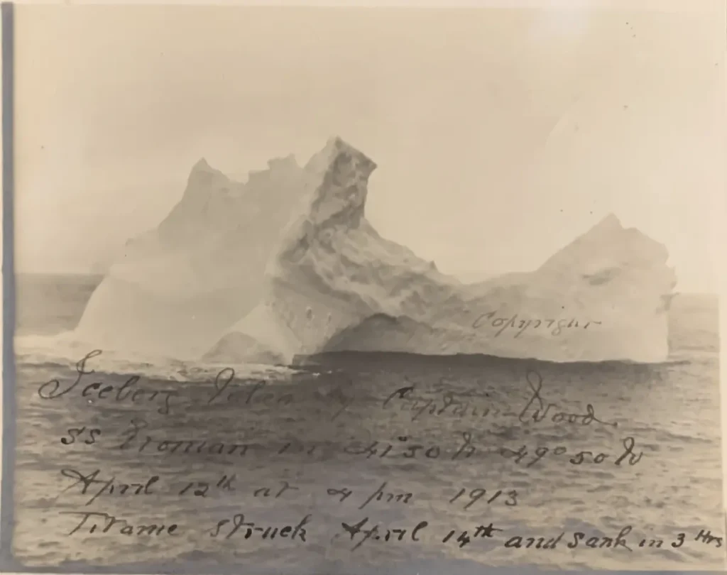 کوه یخی که با تایتانیک برخورد کرد در تابستان ۱۹۰۹ یعنی درست همان سالی که ساخت تایتانیک آغاز شد از یخچال های قطب شمال جدا شده بود. و به سمت آب های شمال اقیانوس اطلس آغاز به حرکت کرده بود. این کوه یخ قبل از شروع به ذوب شدن بیش از ۳ کیلومتر عرض و ۳۰ متر ارتفاع داشت. و به اندازه ای بزرگ بود که اگر همه اهرام مصر را در کنار هم می چیدند از آن کوچکتر می شد.