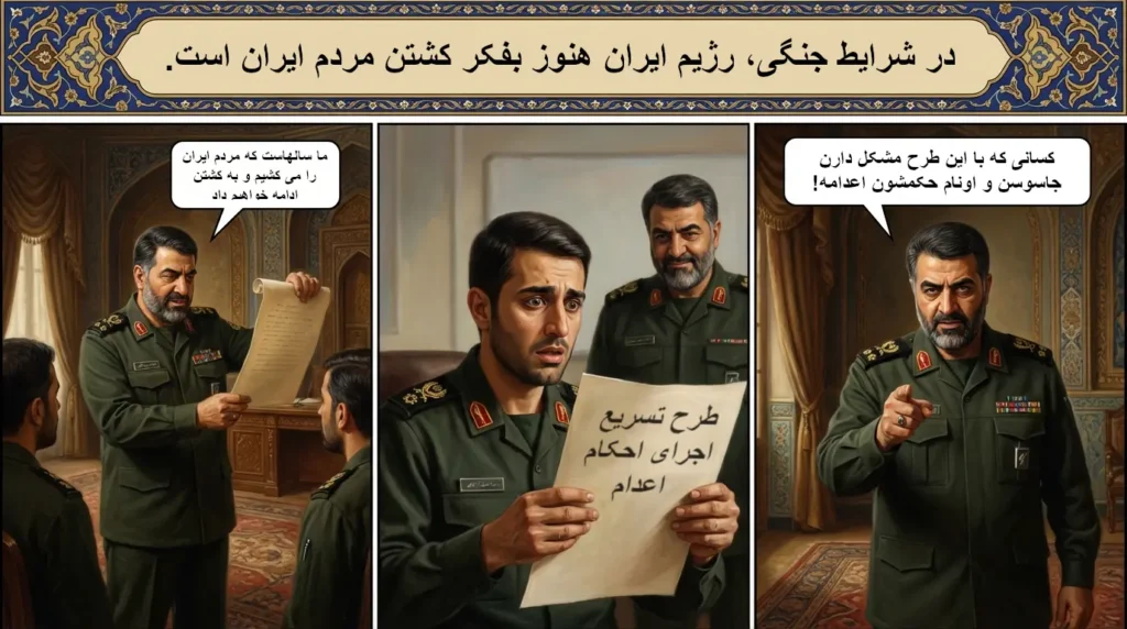 در شرایط جنگی، رژیم ایران هنوز بفکر کشتن مردم ایران است.